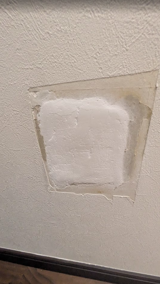 ホームセンターでパテを買って自分でしましたがまだ穴が開いている方がマシ?レベルの仕上がりになってしまいました(笑)見ますか?